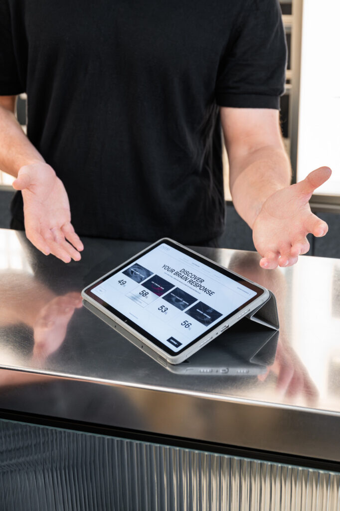 Le Feel Lab Experience, qui repose sur le principe de l’électroencéphalogramme, a été développé par Initio avec Feel’Tech by Micropole, BrainCo et le Harvard Innovation Lab. Les signaux sont transformés en visualisations claires et personnalisées, directement accessibles par le conseiller et le consommateur sur une tablette numérique.